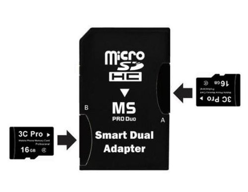 Two Pieces 3C Pro 16GB Class 4 MicroSDHC Cards plus Dual Slot MicroSDHC to MS Pro Duo Adapter bundle.The included adapter converts both of the 3C Pro 16GB MicroSDHC Cards into one 32GB MS Pro Duo Card for use with Pro Duo enabled devices, including PSP. *IMPORTANT* NOTE: 1. Please FORMAT MicroSD cards with Dual adapter on a SONY product or PSP before using the card.(DO NOT FORMAT with by a PC) 2. Keep Micro SD cards the adapter all times for data transfer. DO NOT transfer data from Micro SD cards without the adapter to any other device(PC) . Doing so will cause data corruption. 3. Most card readers DO NOT support high capacity Memory Stick Pro Duo memory cards. Please use a USB cable to transfer data from your PSP or SONY products to your PC or other device. 4. For customers using PSP system software version 2.80 or earlier: PSP systems with system software version 2.80 or earlier do not correctly recognize high-capacity Memory Stick PRO DuoTM with more than 4 GB of free (recordable) memory space. Please update.B0048HD7JCASIN